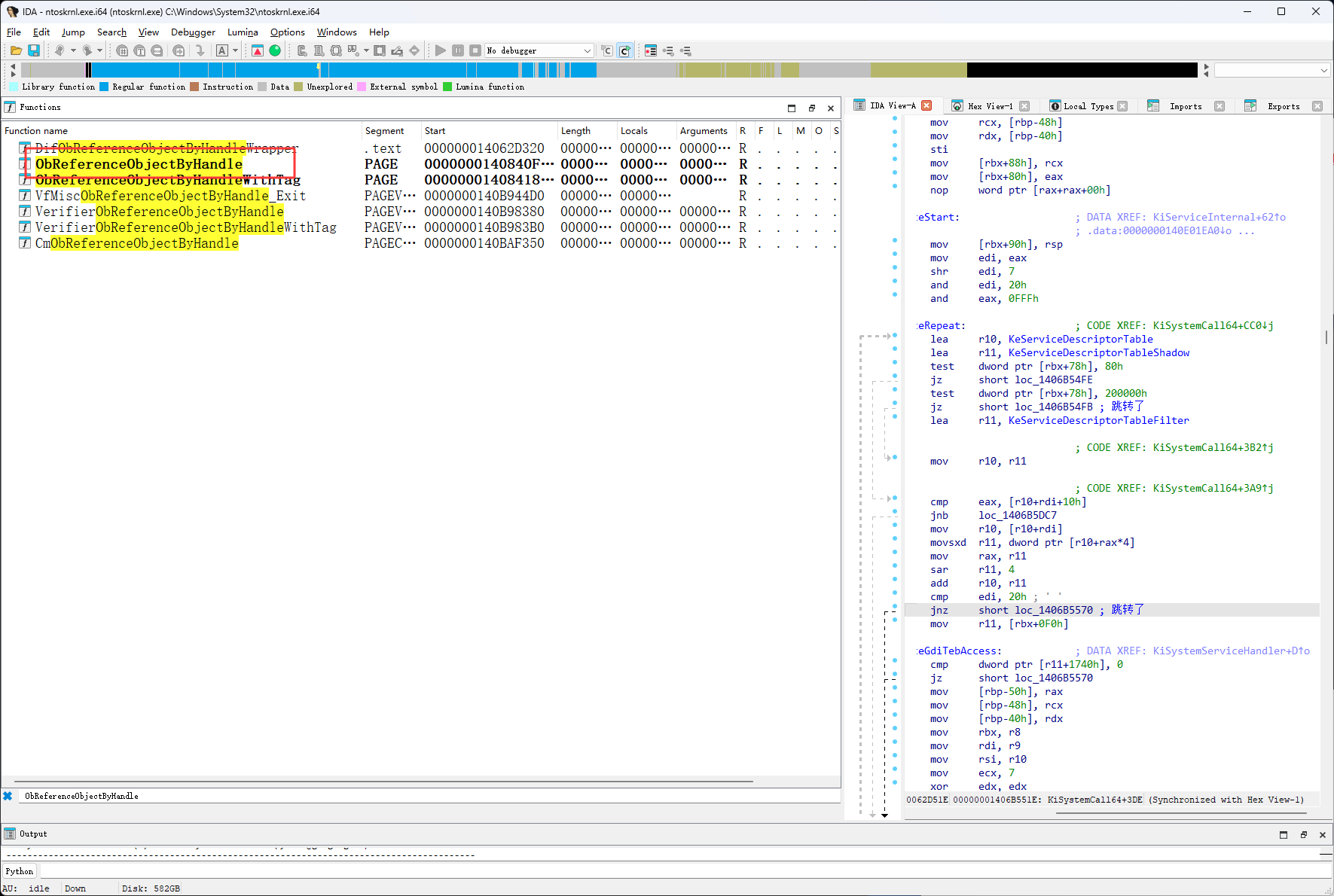 使用ida打开后,搜索ObReferenceObjectByHandle,ExpLookupHandleTableEntry未导出,要使用ObReferenceObjectByHandle来找,很多资料也是通过它 开始逆的