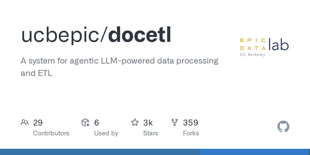 - 💡 推荐语: DocETL是一个由智能体驱动的Python数据ETL系统,利用大语言模型自动处理数据流程