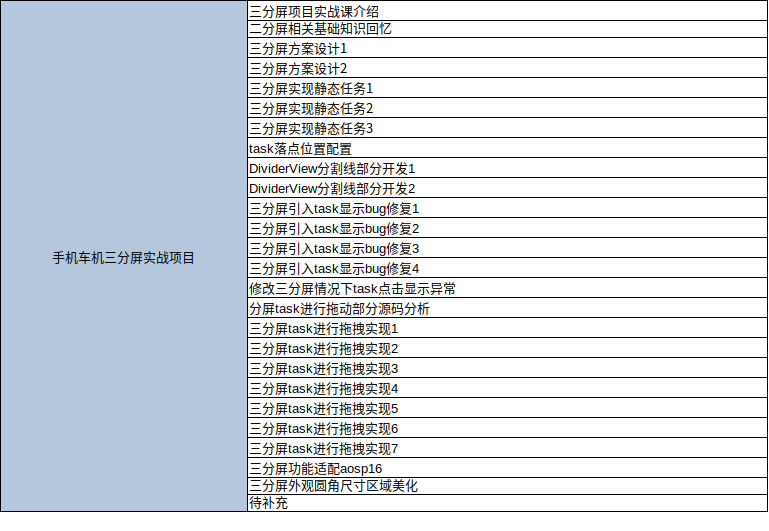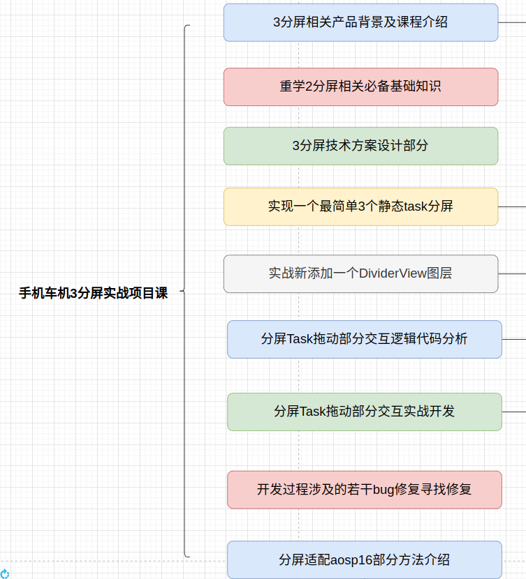 也把它做成了一个专题课程"android车机手机三分屏实战项目专题",马哥手把手带大家实现一个三分屏功能。