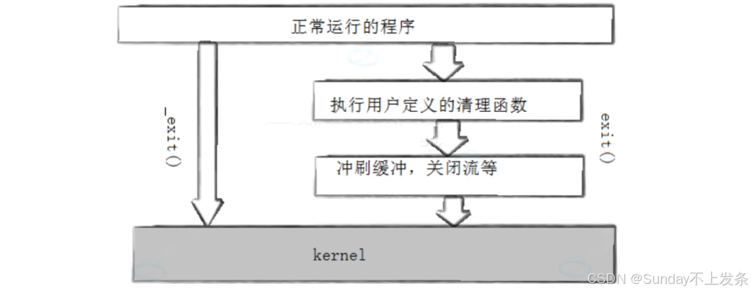 📢 那么_exit 和 exit 有什么区别呢?_exit 属于系统调用(内核态底层),而exit 属于标准库中的函数。