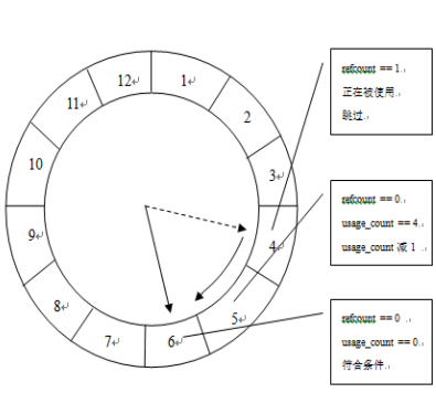 refcount == 0且usage_count > 0: 给予第二次机会 。将其usage_count减1(或清零),表针继续前进。 - 遇到