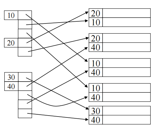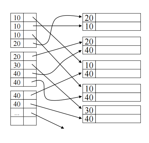 ('Toy', ptr_bucket1)指向一个"桶"(一个指针块)。这个桶中集中存放 了所有指向'Toy'员工记录的真实指针(ptr1, ptr2, ptr3, ...)。 - 优点: 索引文件本身保持定长(或只索引唯一的码值),易于管理;桶可以按需分配。