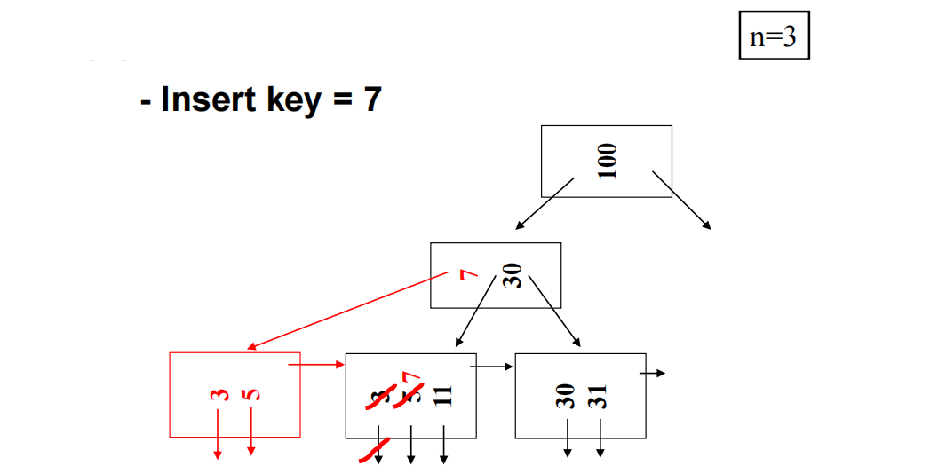 - 上提操作导致父结点也满了 (n个键, n+1个指针)。