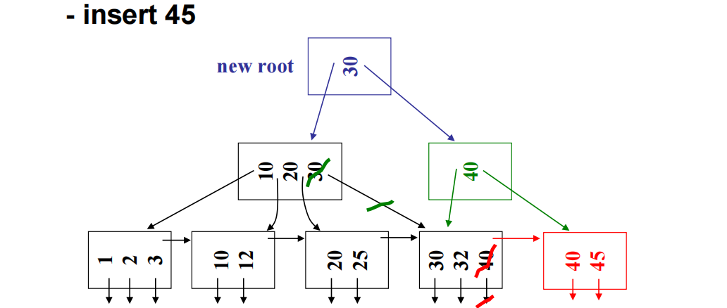 - 分裂操作递归传递,直到根结点也溢出。