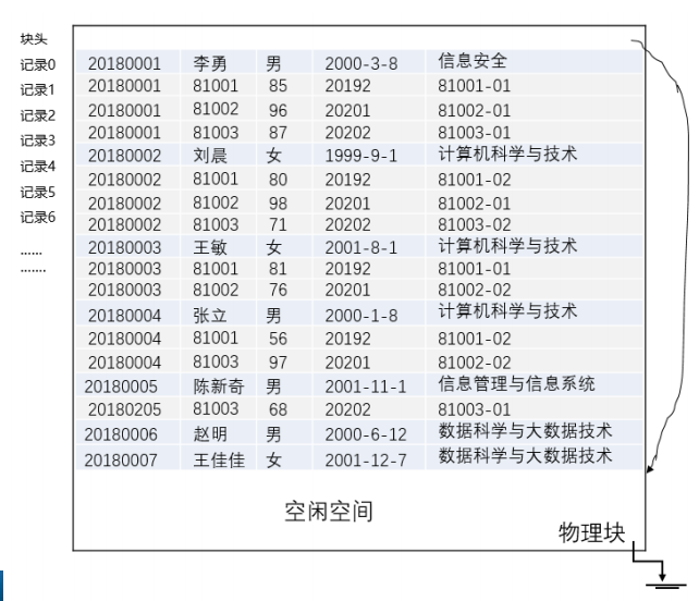 - 数据存储层 : 这是本章的重点。它负责管理物理存储,包括存储记录 、物理块 以及系统缓冲区。