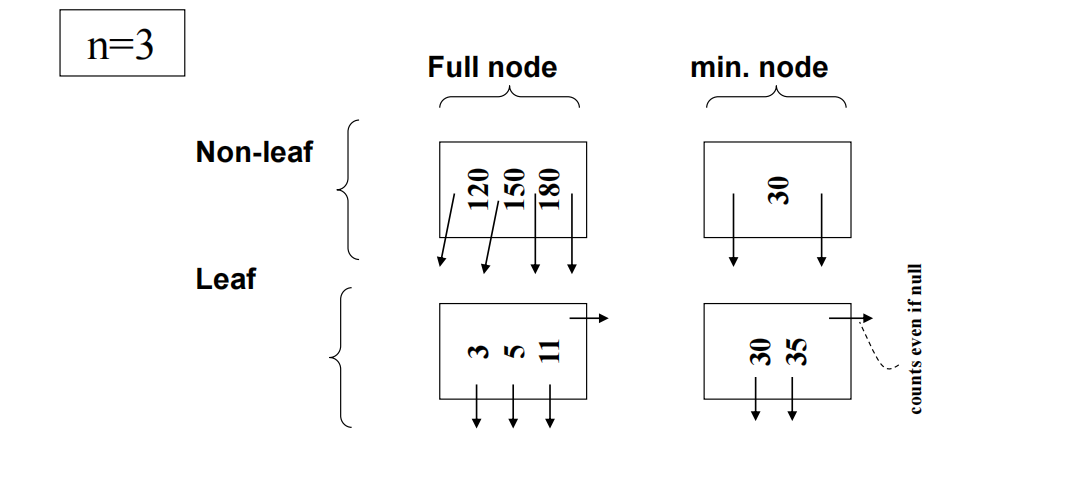 - B+树结点结构 (以n=3为例) :