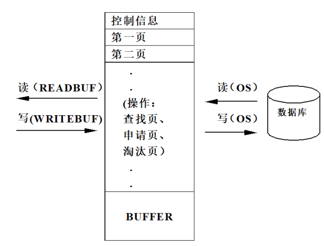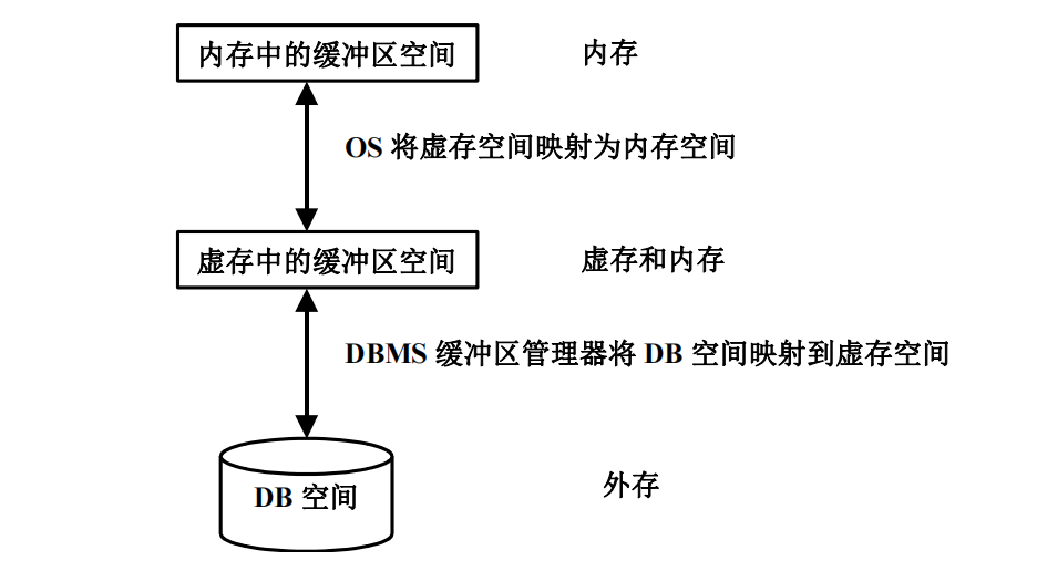 - 缓冲区在虚存中 : 内存DBMS和OODBMS(面向对象数据库)可能采用。DBMS将缓冲区建立在虚拟内存中,由OS来决定哪些页面常驻内存,哪些交换到磁盘的"交换空间"(Swap Space)。