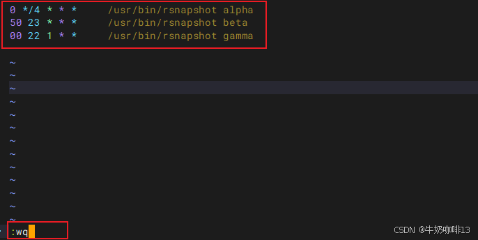 #2-【/etc/cron.d/rsnapshot】文件定时任务示例如下: