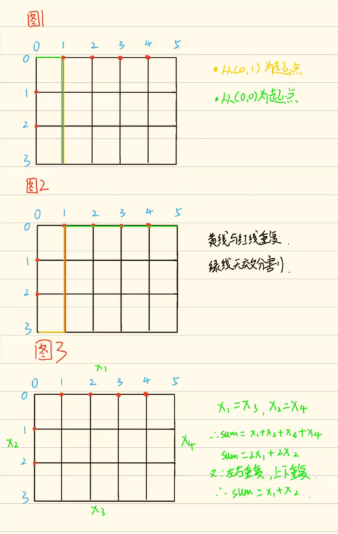 - 本道题需要一定的问题转化能力,若单纯把它,看成一个矩形去举例,那么这道题的难度将大大增加,所以,需要把它转化成从一个起点出发,寻找合适的终点问题