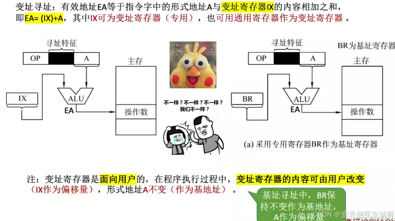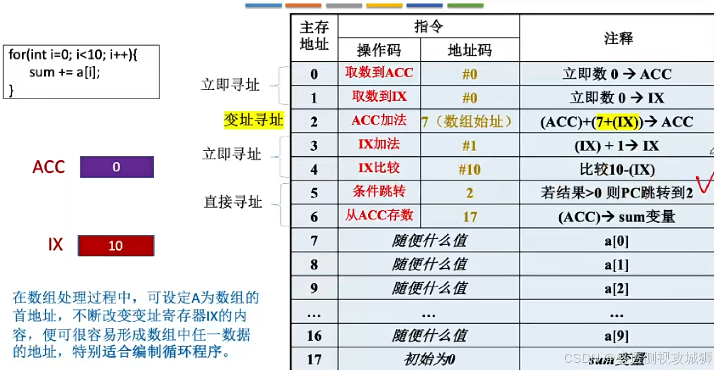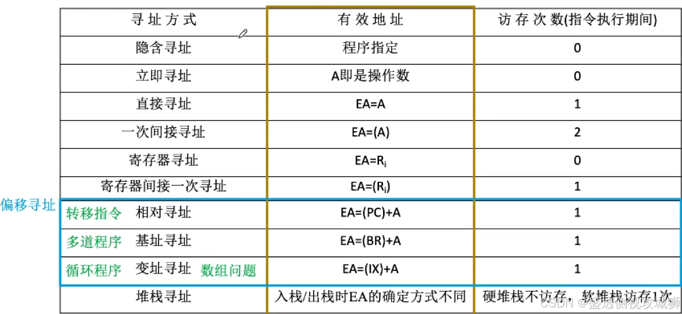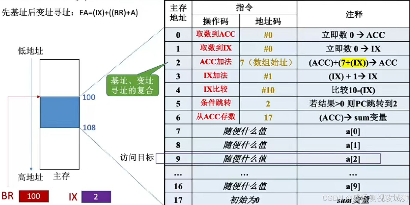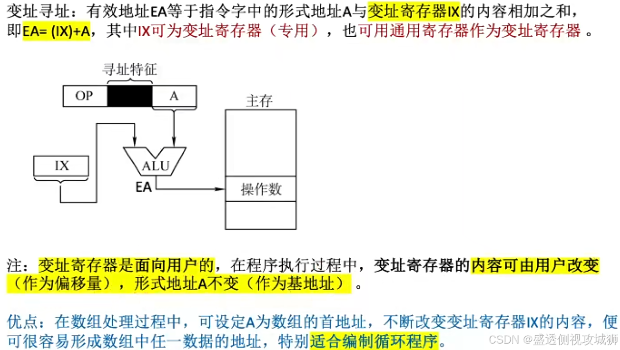 - 而在变址寻址中,程序员操作的是变址寄存器,偏移地址是固定不变的。