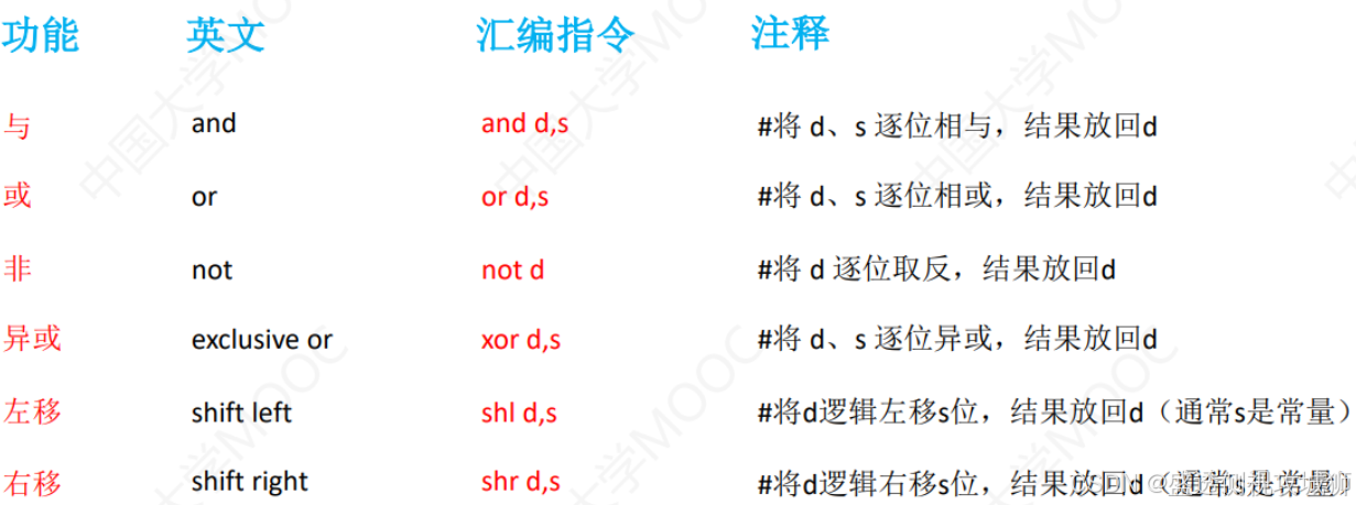 常见的逻辑运算指令