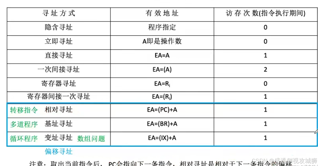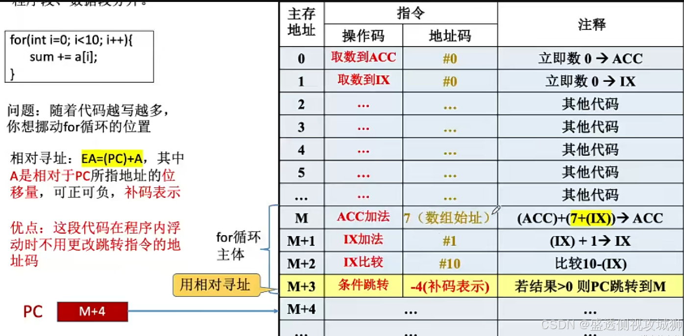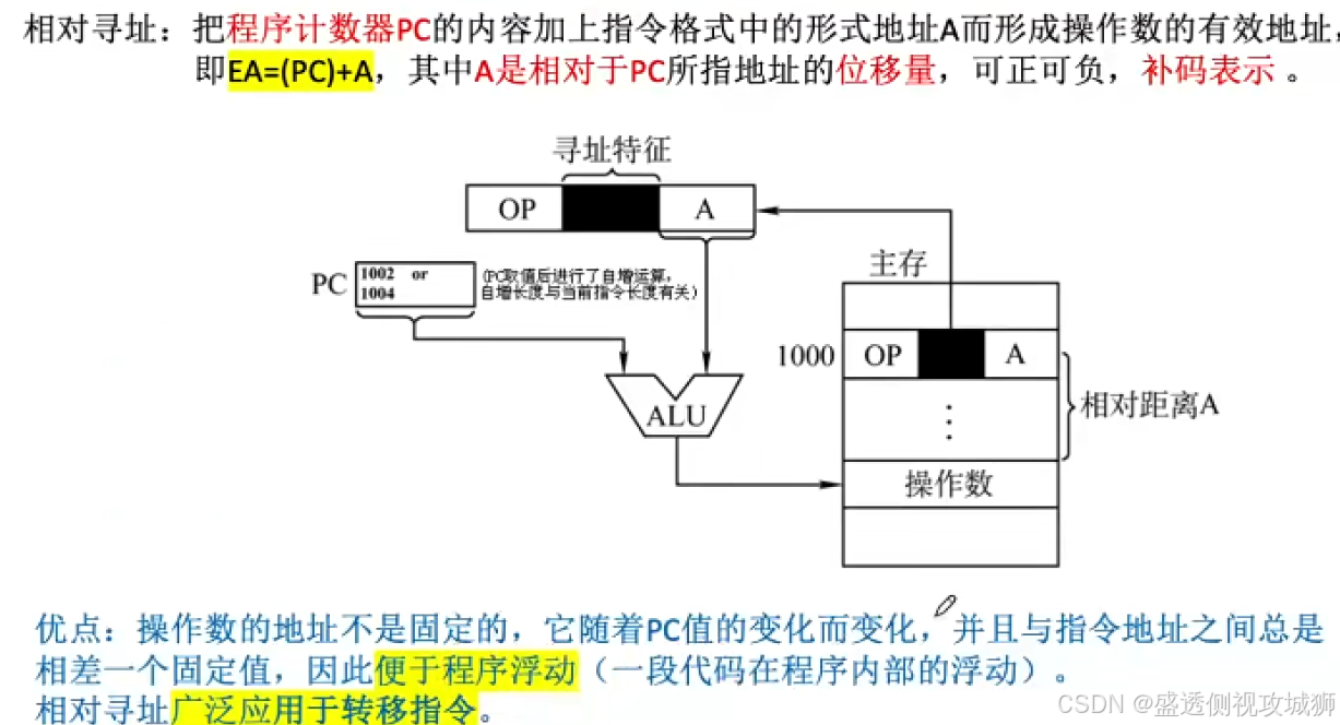 - 相对寻址用于控制程序的执行顺序、转移等。