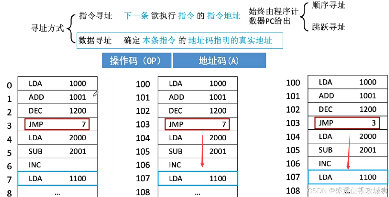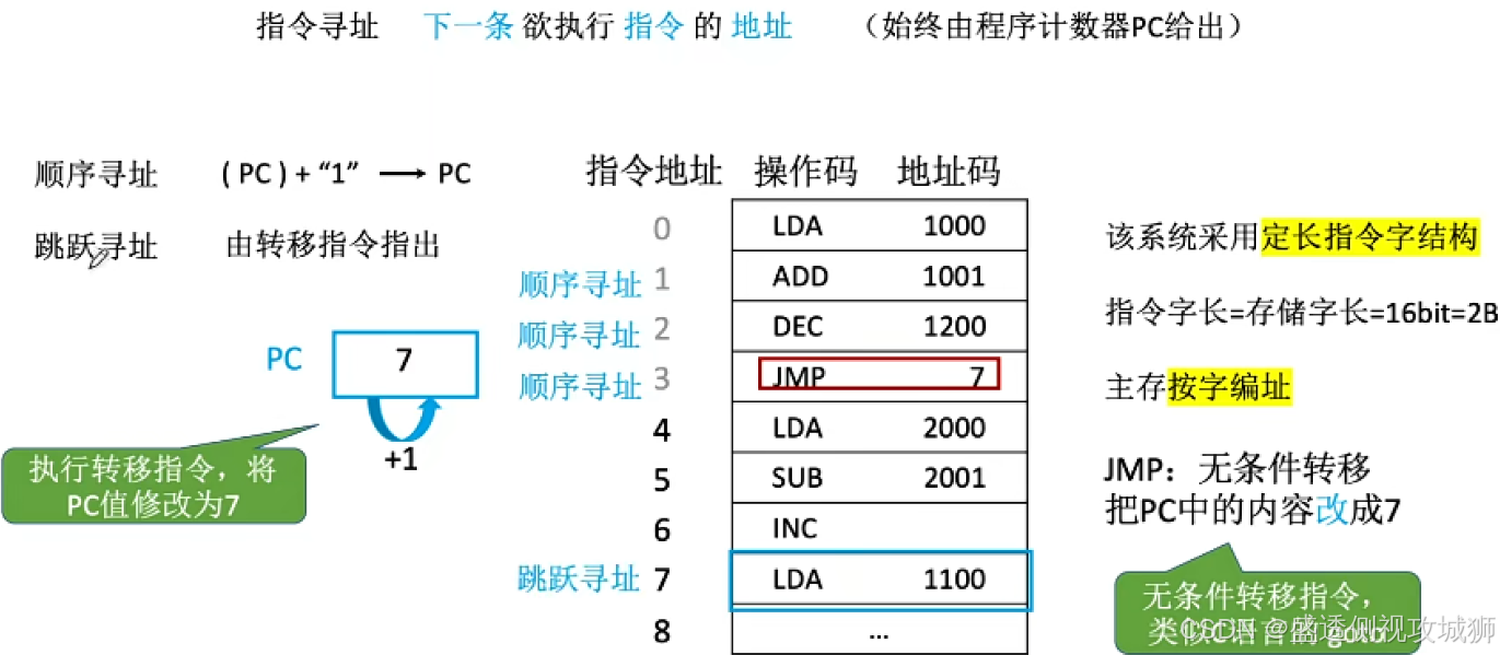 跳跃寻址:由转移指令指出