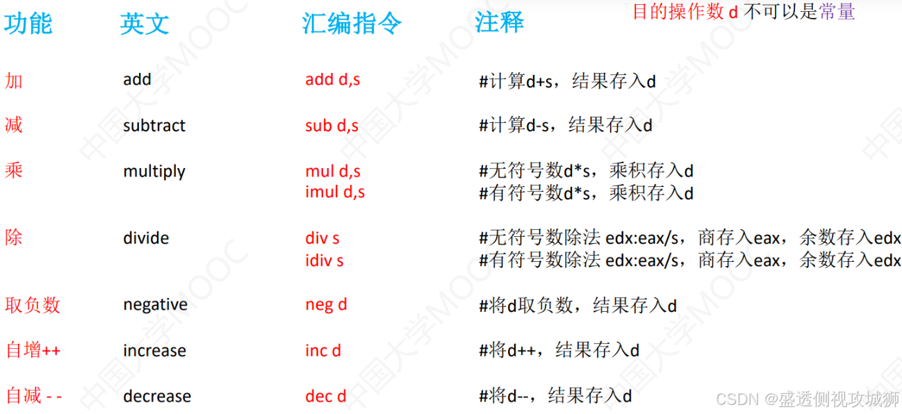 - 目的操作数d不可以是常量