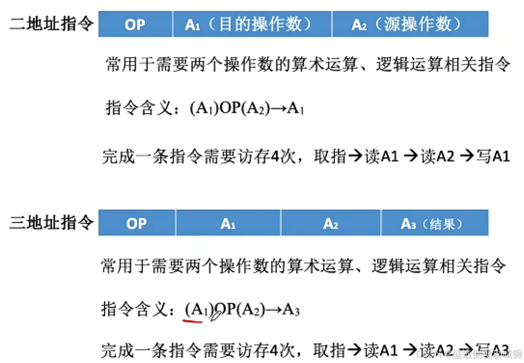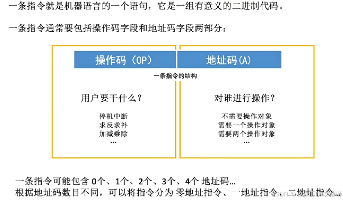 - 指令由操作码和若干地址码组成