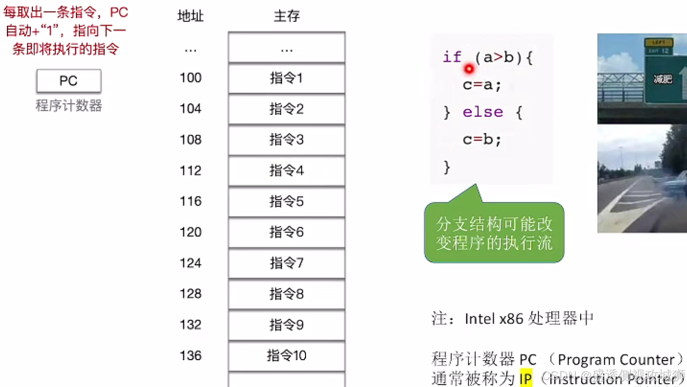 - 程序计数器PC:存放下一条指令所在单元的地址