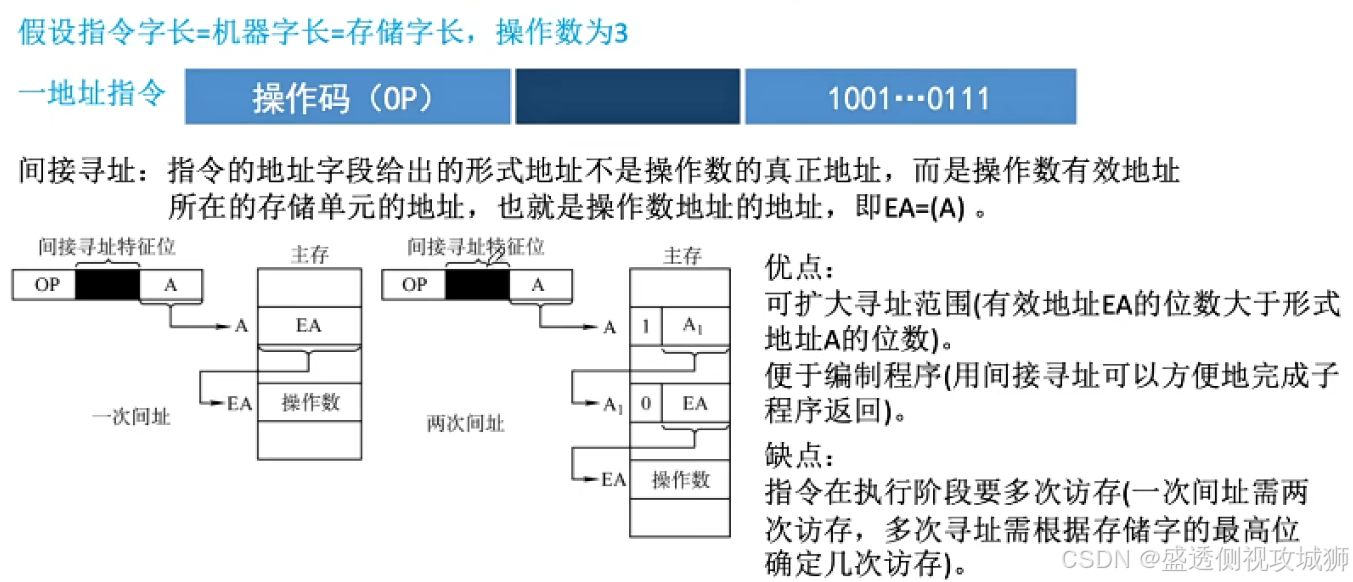 - 间接寻址扩大了寻址范围,便于编制程序,易于完成子程序返回。