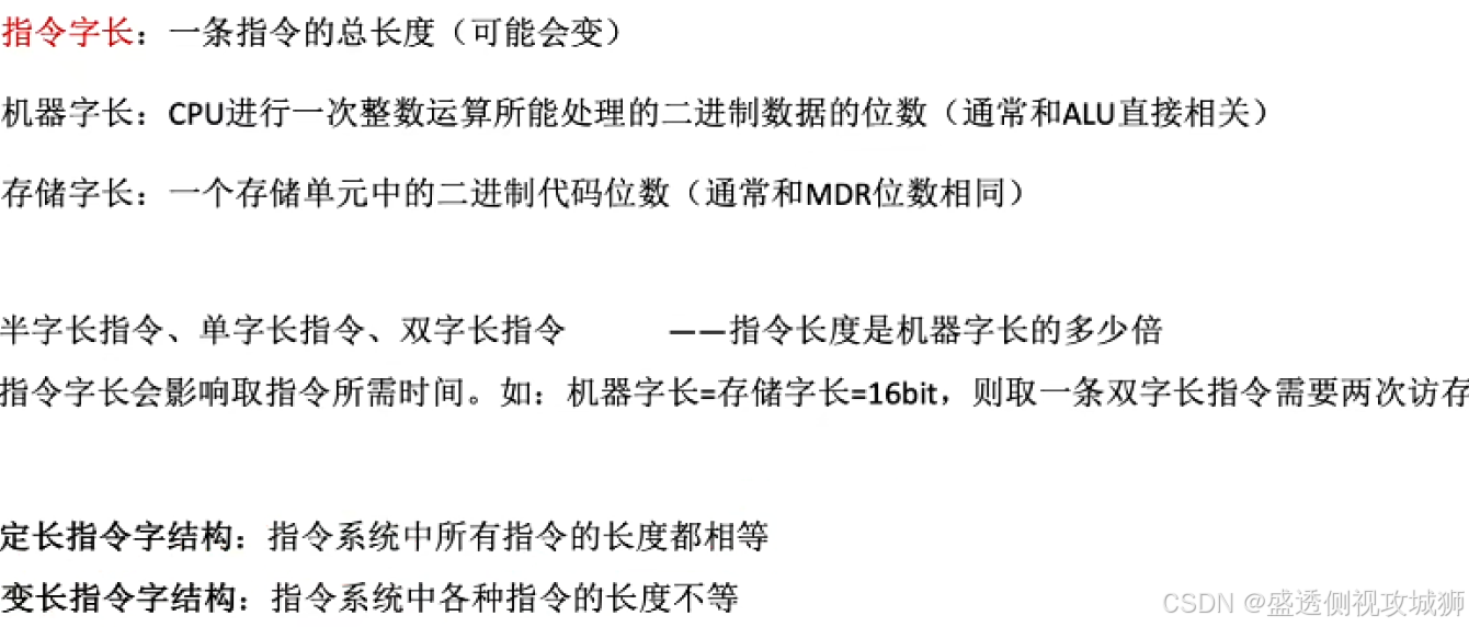 - 定长指令字结构:指令系统中所有指令的长度相等。
