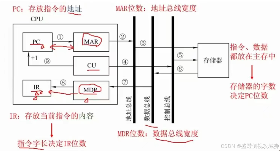 - 地址寄存器MAR:用来保存当前CPU所访问的内存单元的地址。