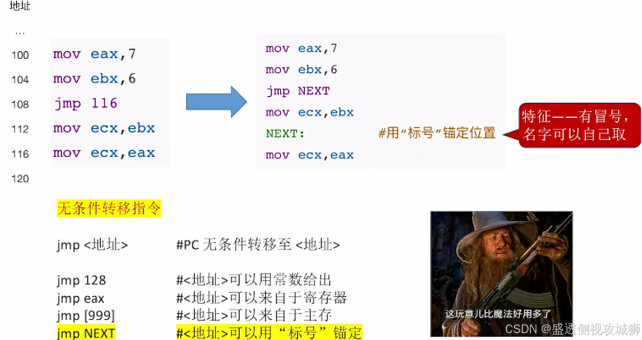 - 无条件转移指令,类似于c语言里的goto语句