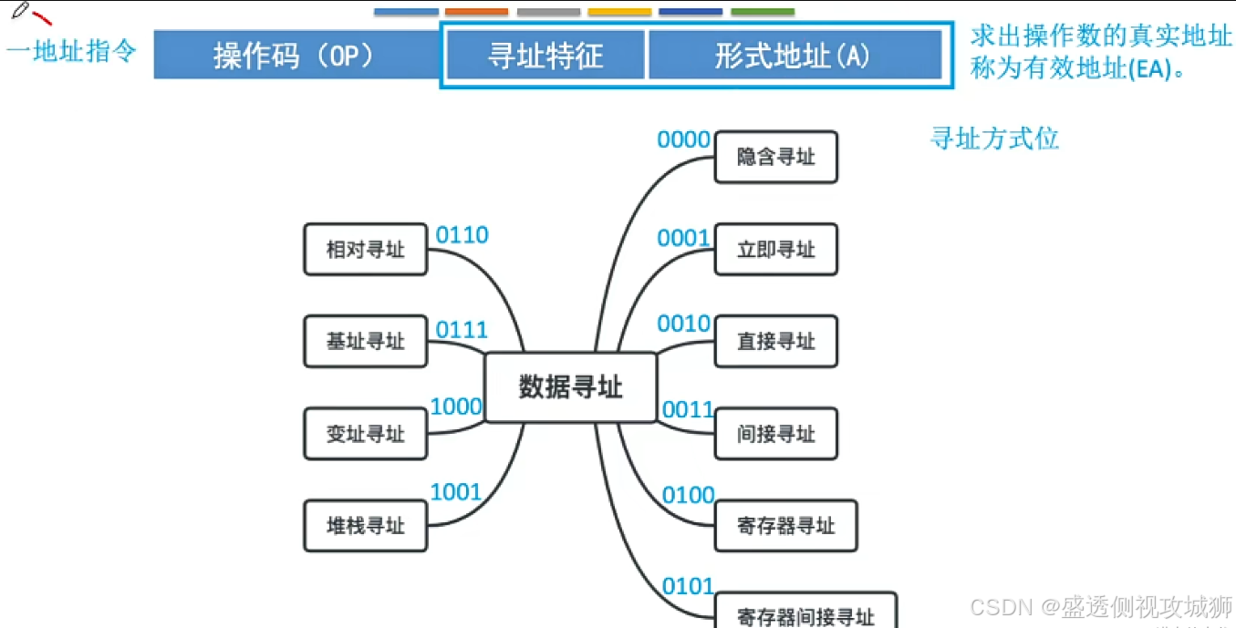 - 寻址方式的多样化能让用户编程更为方便,但多重寻址方式会造成CPU结构的复杂化(详见下章),也不利于指令流水线的运行。