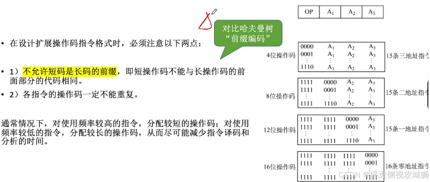 - 定长操作码:指令系统中所有指令的操作码长度相等