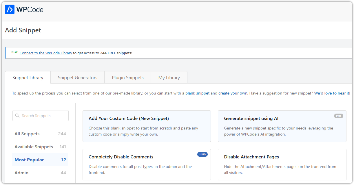 WPCode插件提供了一个内置的代码片段库,其中包含了许多常用的WordPress代码片段,可以让您更方便地添加自定义功能,而无需编写复杂的代码。例如,使用WPCode插件,可以实现上传图片、选择您想要使用的WordPress编辑器、禁用评论等功能。对于初学者和开发者来说,这样的工具极大地简化了自定义WordPress网站的过程。