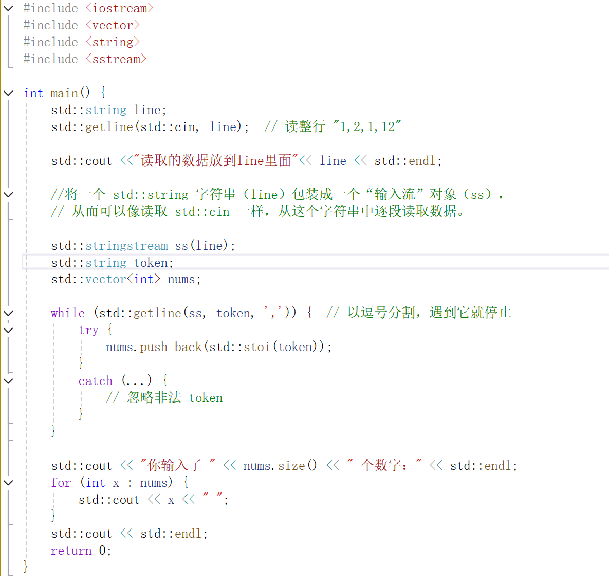 一个小样例:获取用户输入的一串数据,中的整形数据。stoi()会过滤非string类型数据。