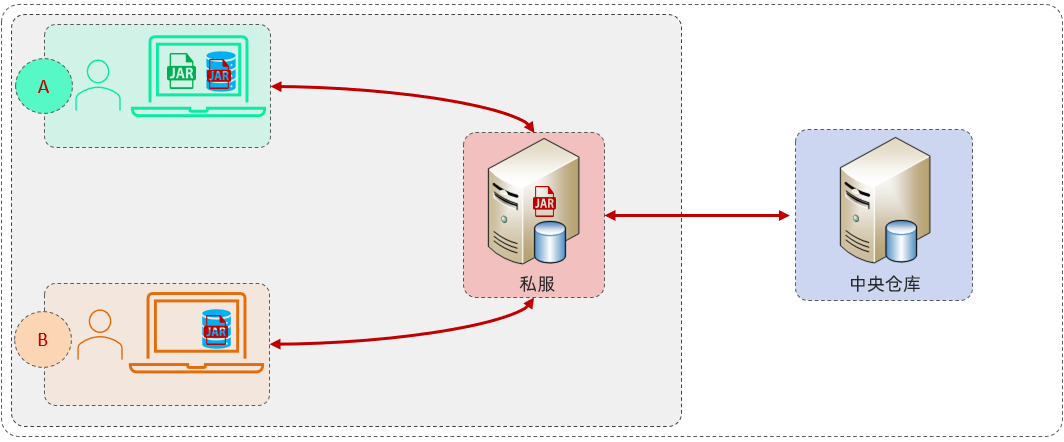 解决方案:搭建企业私服(局域网内的远程仓库),A 组将模块上传到私服,B 组从私服下载模块。
