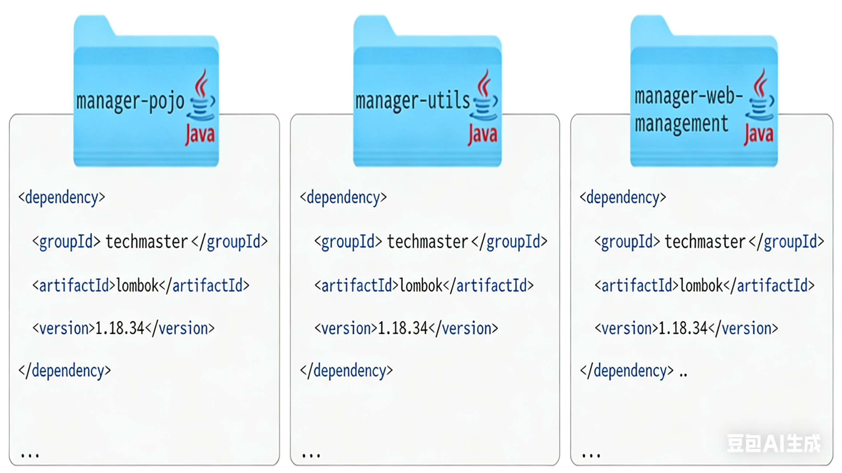 | 相同点 | 1. 打包方式均为 pom;2. 均为设计型模块,无业务代码;3. 企业中通常共用一个 pom.xml(父工程同时作为聚合工程) ||