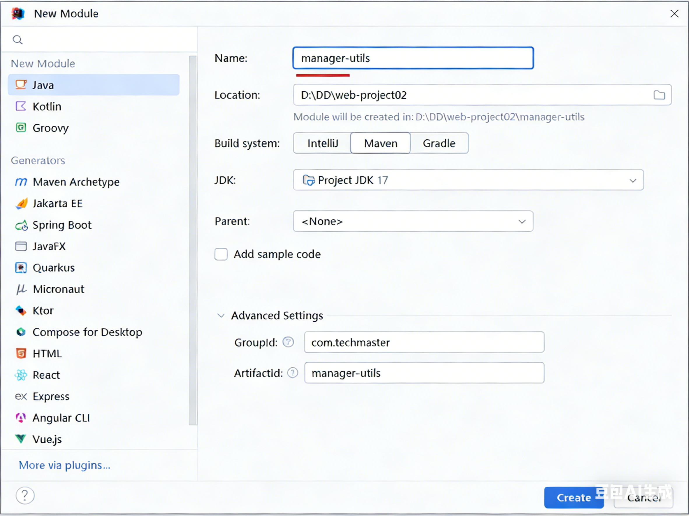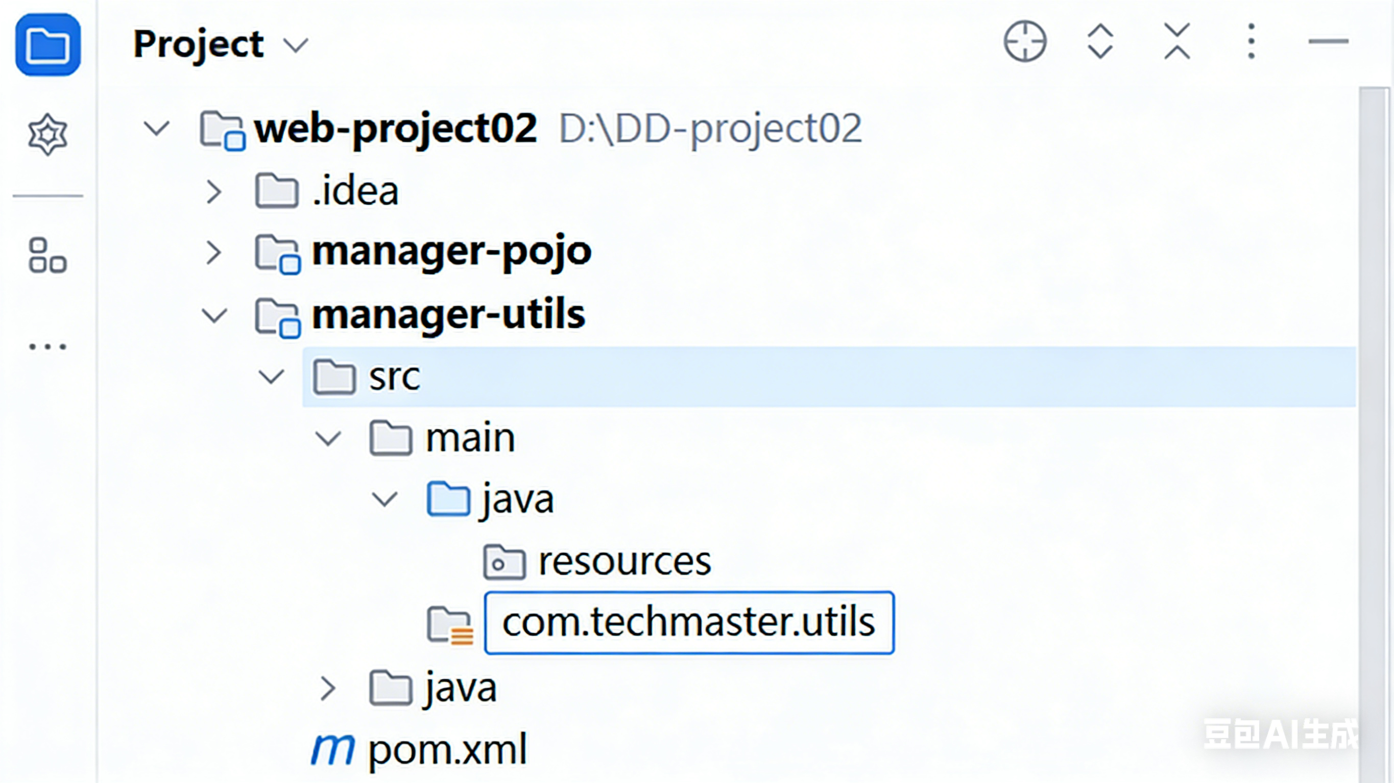 2.在模块中创建包:com.techmaster.utils(与原项目包名一致)