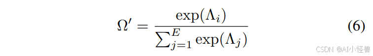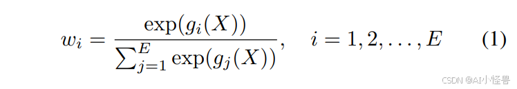 专家权重Ω的计算。门控网络G输出原始逻辑值 Λ ∈ R^{E×1×1}。首先,Λ通过Softmax函数归一化以获得初始权重: