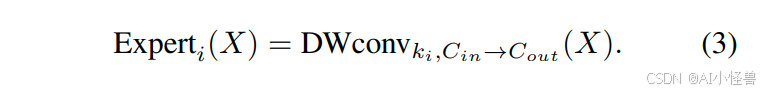 高效专家架构 。为了满足实时检测严格的计算限制,每个专家 Expert_i 采用深度可分离卷积作为其基本构建块,而不是标准卷积 [11]。DWconv通过解耦空间滤波(深度卷积)和通道信息集成(逐点卷积),显著减少了参数量和FLOPs:
