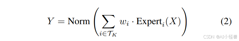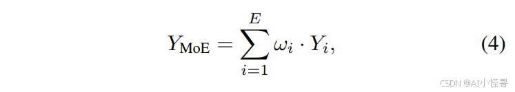 其中 gi(·) 表示第 i 个专家的门控函数。根据计算出的权重 w,选择权重最高的前K个专家,其中 K ≪ E 以确保稀疏激活。然后,通过加权聚合将所选专家的输出结合起来,生成增强后的特征图 Y [14, 35]: