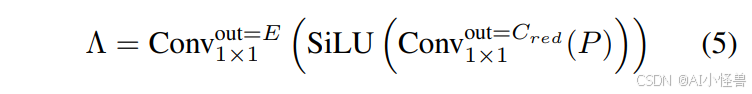 其中 Conv_{out=C'}^{1×1} 表示输出通道为 C' 的 1×1 卷积。输出 Λ 代表了跨空间维度的E个专家的统一逻辑分数。