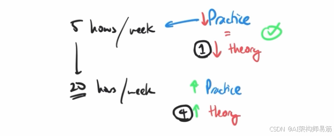 - 例:5小时练习 → 最多1小时理论学习;20小时练习 → 最多4小时理论学习。