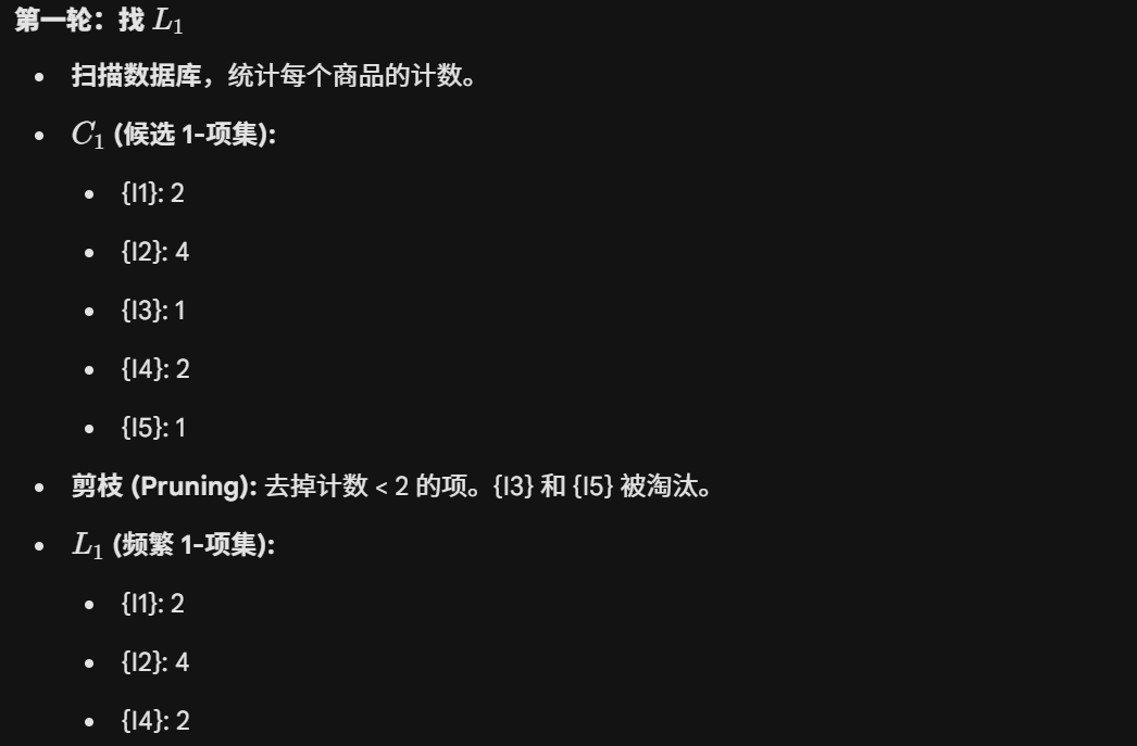 最终的所有频繁项集: {I1}, {I2}, {I4}, {I1, I2}, {I2, I4}