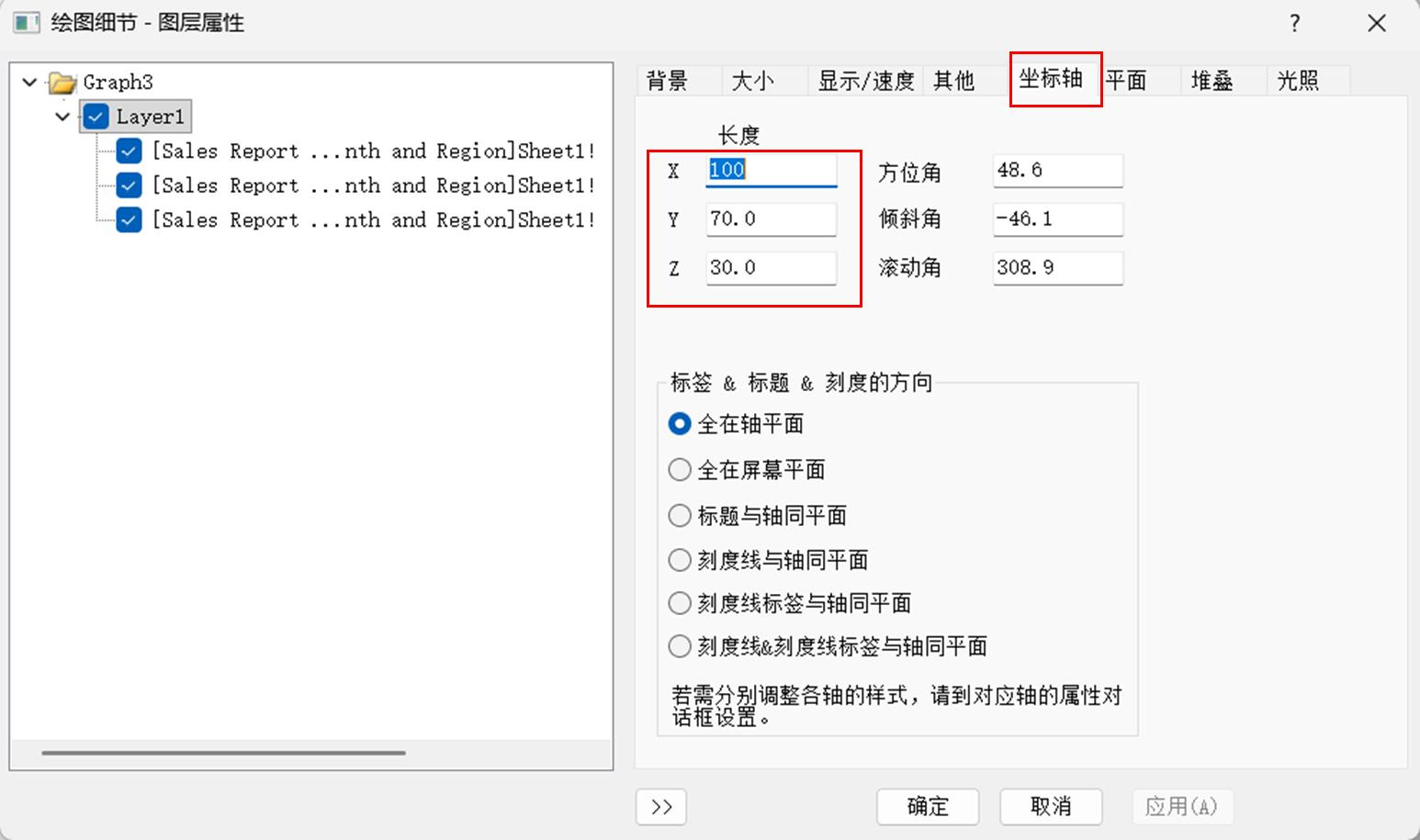 6.双击图形空白处,在坐标轴对话框下,选择修改Y和Z的长度百分比;