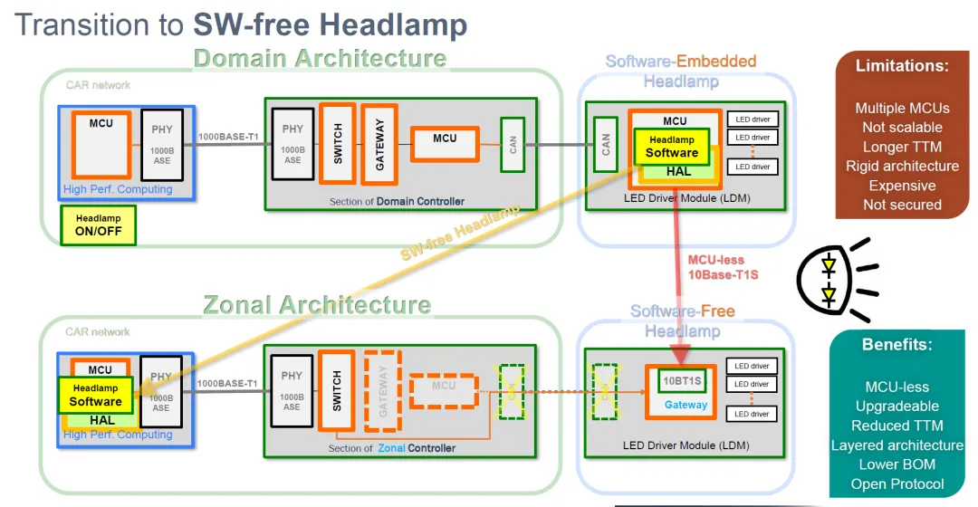 痛点:当我们想升级大灯的控制逻辑(比如实现"随动转向+行人避让"),我们无法绕过供应商的 MCU 代码。这颗小小的 MCU 成了扼杀创新的瓶颈。