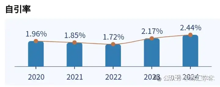 期刊自引率近几年基本保持在2%左右,最新自引率为2.4%,数据非常健康。