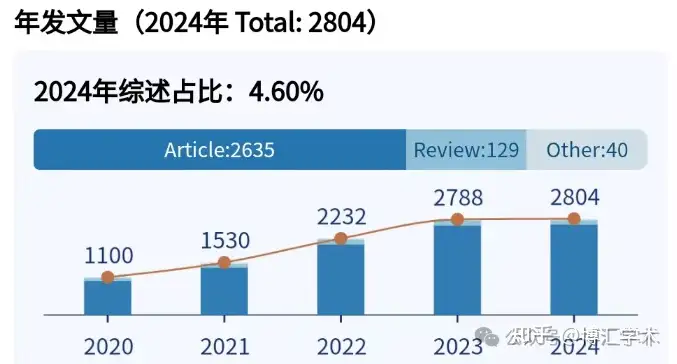 近三年,我国发文量是最高的,且24年较23年更是增长1000+篇,不知道今年是否还会变多。