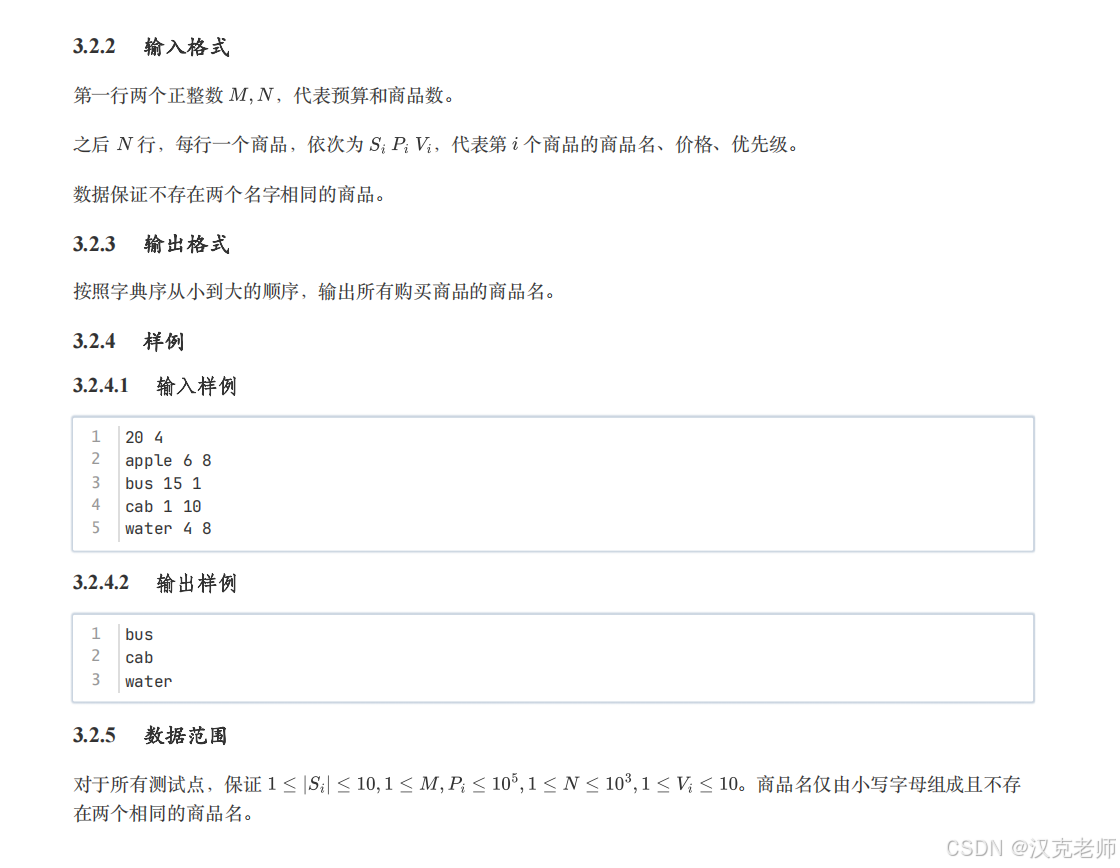 输出时,商品名要按字典序从小到大