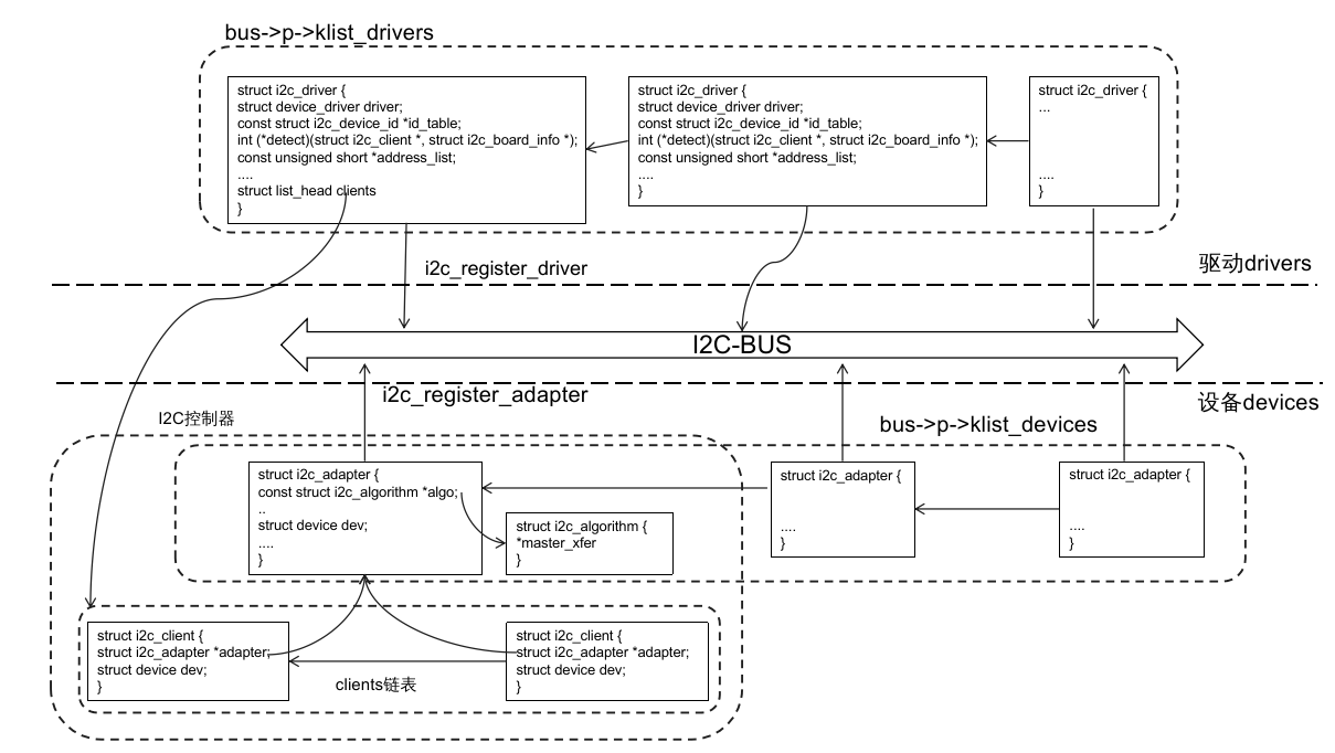 上述各项结构体与I2C总线之间的关系如下图所示: