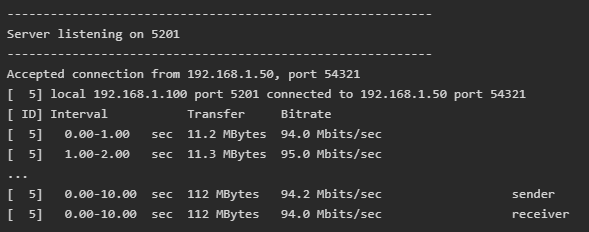 sudo iperf3 -s