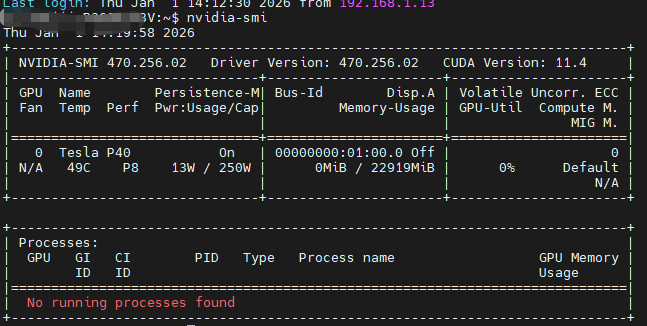 Tesla P40 基于 Kepler 架构,nvidia-driver-470 是官方支持的长期维护版本,执行以下命令安装并重启:
