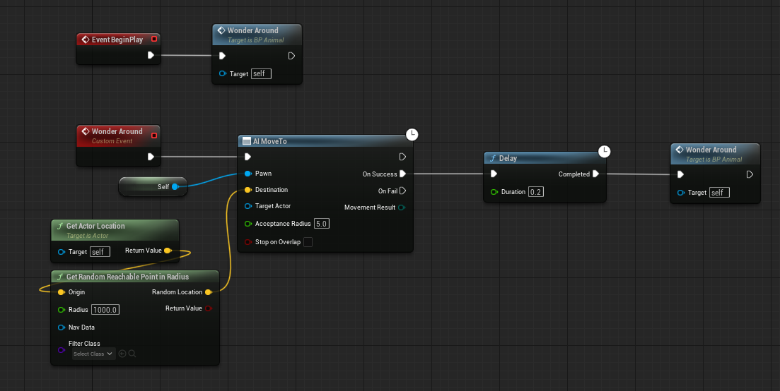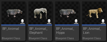 先创建一个动物的父蓝图,然后在子蓝图内指定具体动物的动画蓝图;