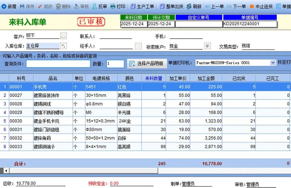 电镀加工厂在接收到客户的产品后,可以做来料入库单进行记录,支持Excel导入快速录入数据到系统中,还可一同记录客户的来料单号,在后面生成客户对账单时,可以直接显示出来,方便核实工作。随后在完成加工后,系统可以做送货单,并严格控制关联来料入库单选择产品开始出货。如果是分批送货,还可以返回至来料入库单上查看产品的出货进度,以及损耗率等。系统会根据入库和送货记录,自动更新库存数量,确保工厂可以实时掌握最新信息,控制并降低损失。