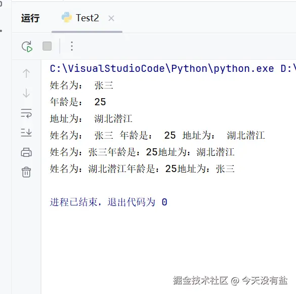 print("姓名为:",name,"年龄是:",age,"地址为:",address)