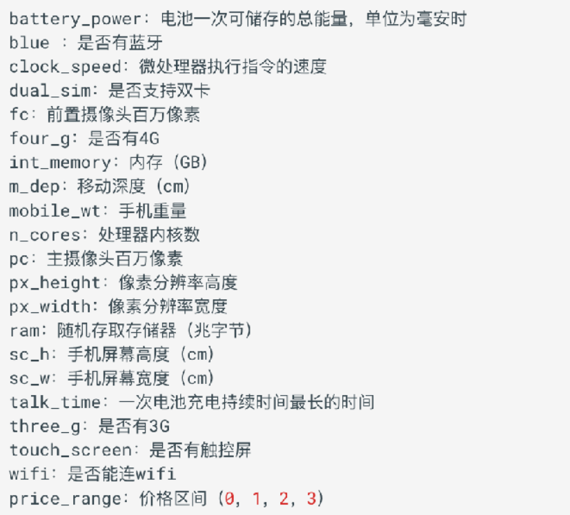 data_df = pd.read_csv(r'data/手机价格预测.csv')