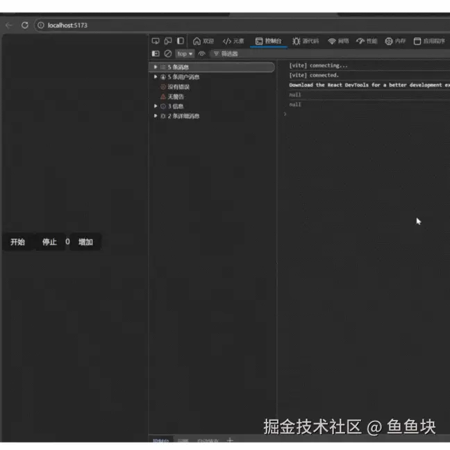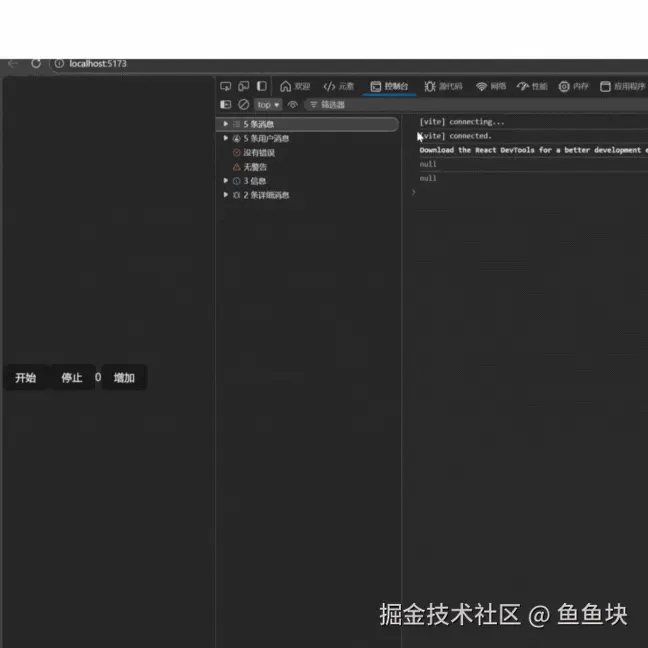 tick~~~ 持续输出,定时器无法清理! 那是因为当我们点击增加按钮时,组件会重新渲染,React 会重新调用 App 组件函数(即重新渲染),intervalId 都会被重置为 null ,clearInterval(null) 无效, 真正的定时器 ID 已经"丢失" ,无法被清除 → 'tick~~~' 持续输出!